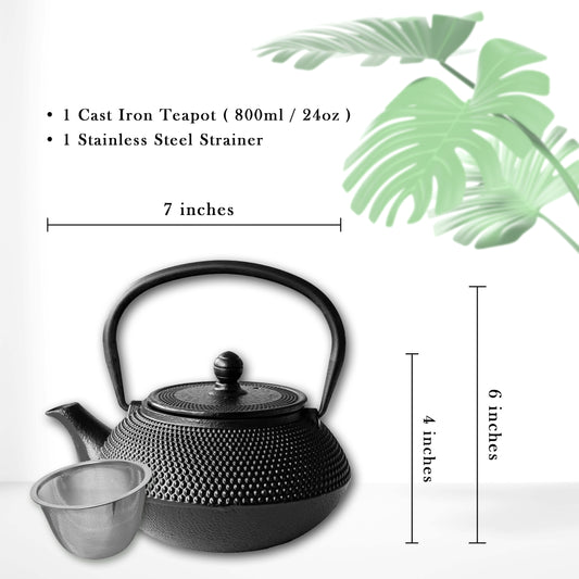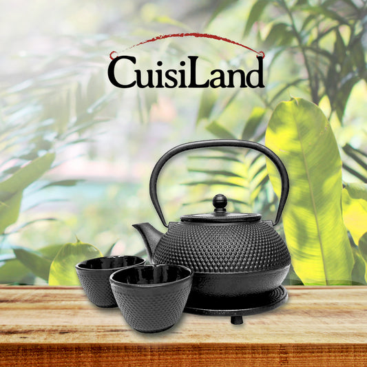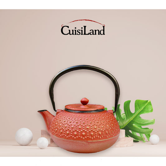 Cuisiland Cast Iron teapot with 4 Cups 1 Trivet Set- Enameled Interior and Stainless Steel Infuser