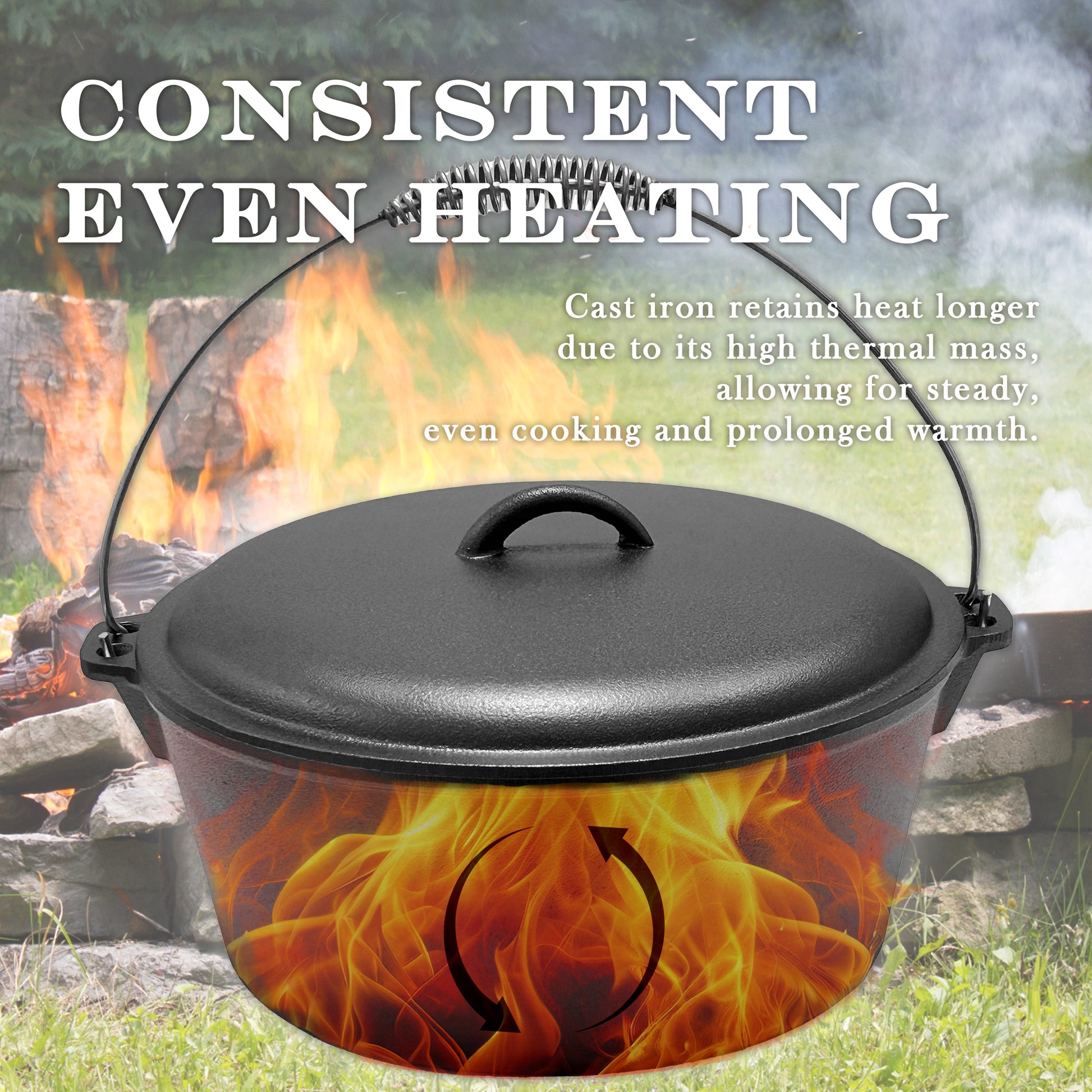 - HIGH-GRADE CAST IRON: This Dutch oven is crafted with high-grade cast iron, known for its exceptional heat conductivity and durability, ensuring even and consistent cooking results.
