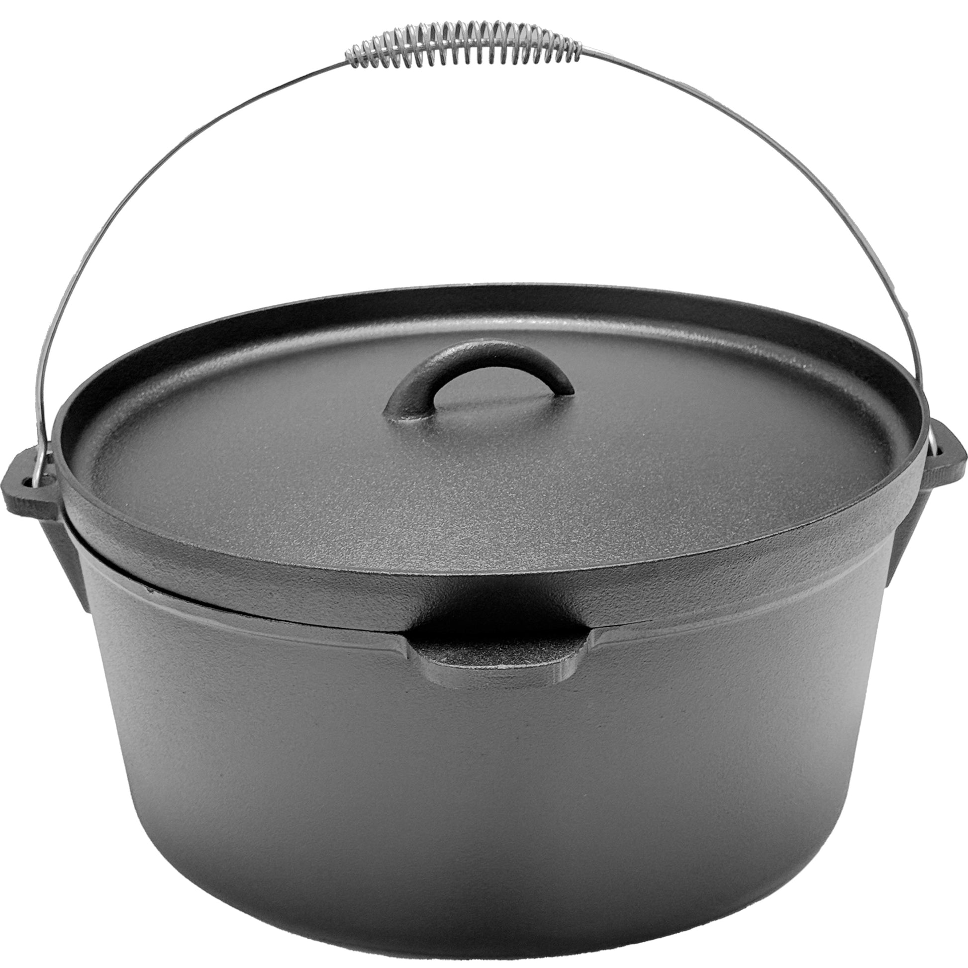 - VARIOUS SIZES: This Dutch Oven is available in sizes ranging from 9 to 20 quarts, allowing you to choose the perfect capacity for your cooking needs. It features a lipped lid and a tripod leg, making it ideal for outdoor cooking over a campfire. The lid can also double as a griddle, providing versatility in your culinary adventures.