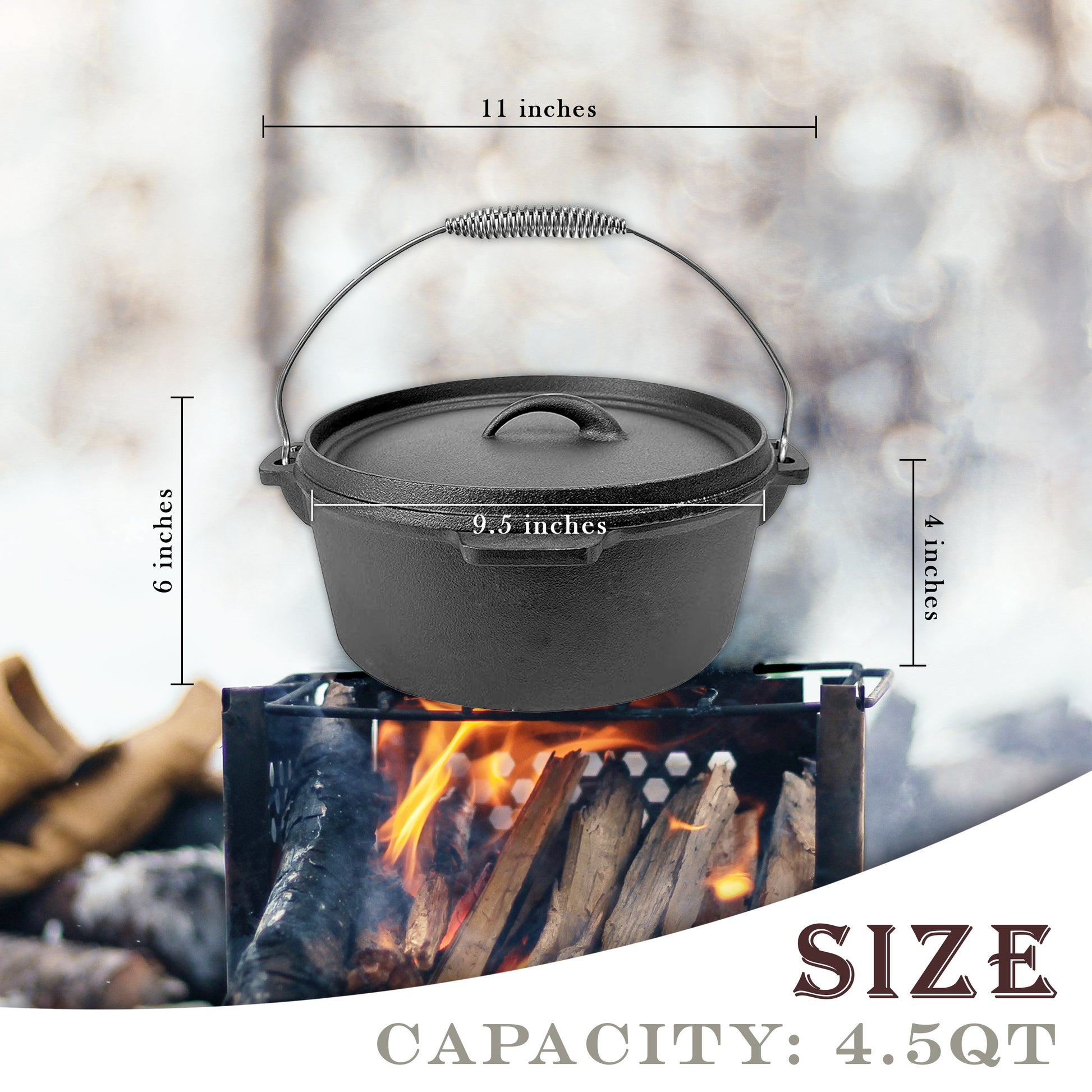 - VERSATILE SIZE: This Dutch oven has a capacity of 4.5 quarts, making it suitable for various cooking needs. The lip lid can also be used as a griddle to fry meals, adding to its versatility.