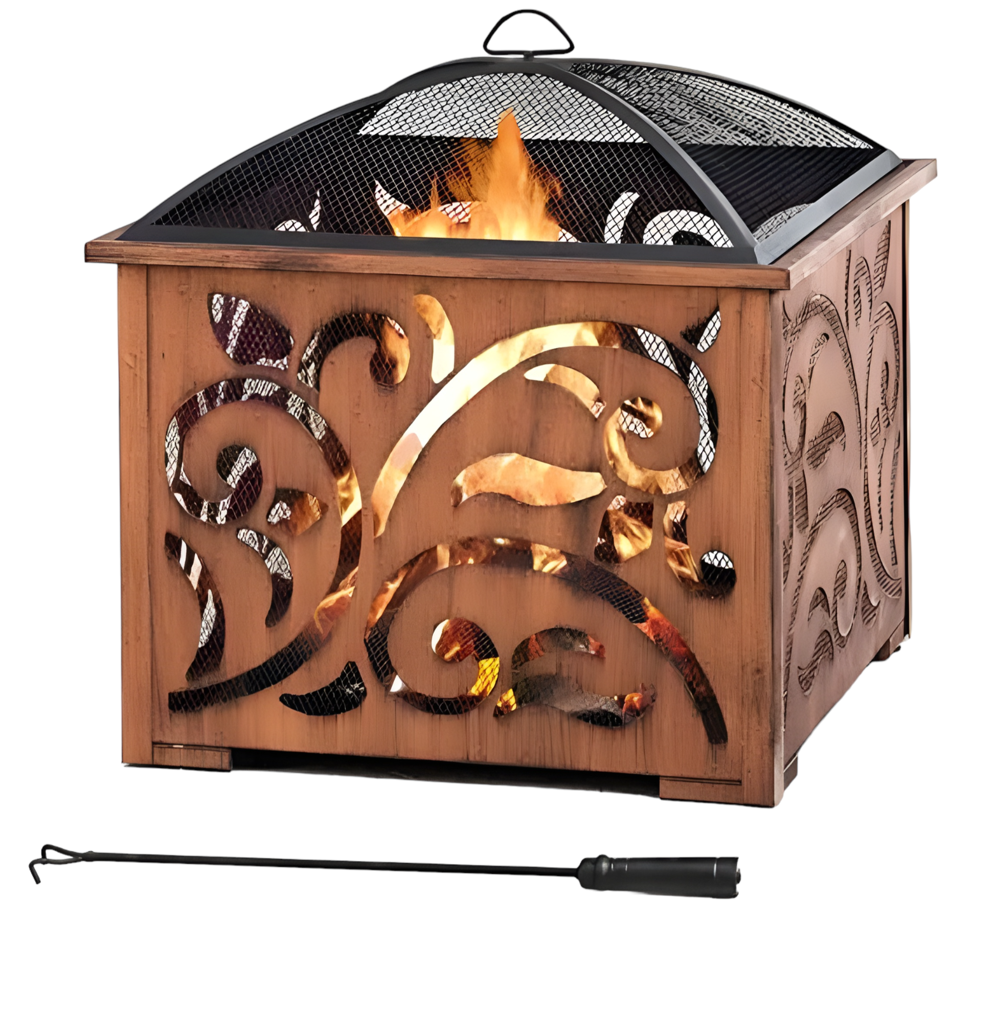- COPPER COLORED RUST-RESISTANT POWDER-COATED STEEL FRAME: The fire pit is equipped with a copper-colored, rust-resistant powder-coated steel frame, adding an elegant touch to your outdoor space while protecting the fire pit from the elements.