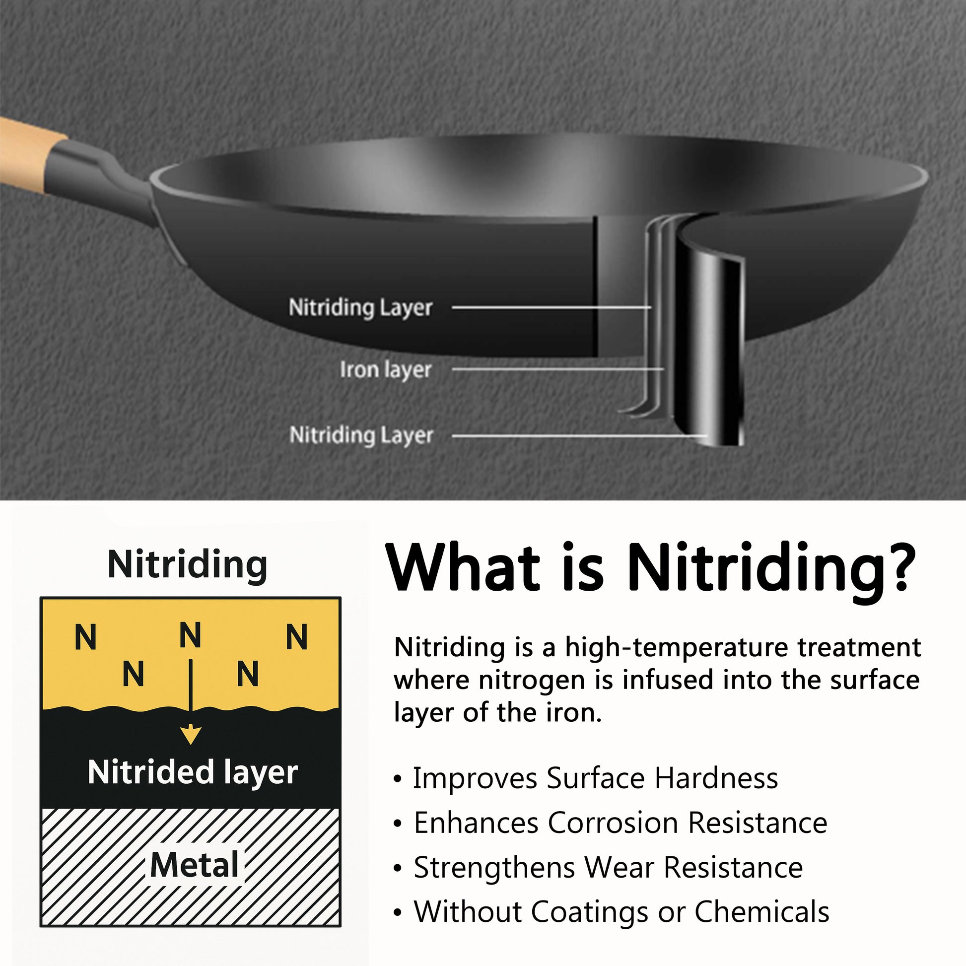 - NATURALLY NON-STICK AFTER SEASONING – Nitride surface seasons faster and more evenly, creating a smooth, natural non-stick layer for effortless cooking and easy food release.
