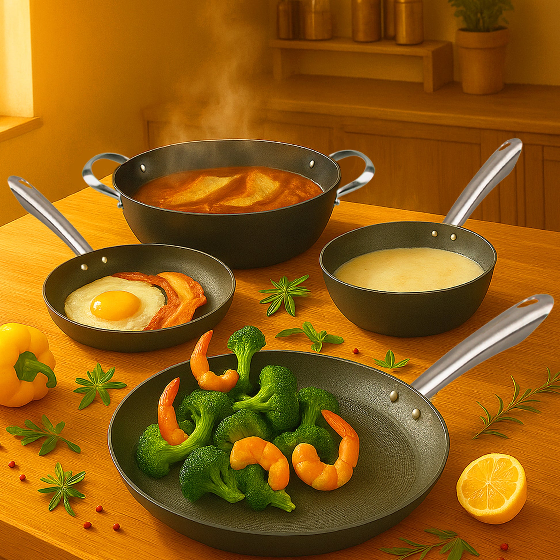 - REAL NON-STICK PERFORMANCE WITH CLASSIC CAST IRON BENEFITS – Each piece combines the even heat distribution and superior heat retention of traditional cast iron with a modern ceramic-coated non-stick surface. Enjoy effortless food release and consistent results without sacrificing durability.
