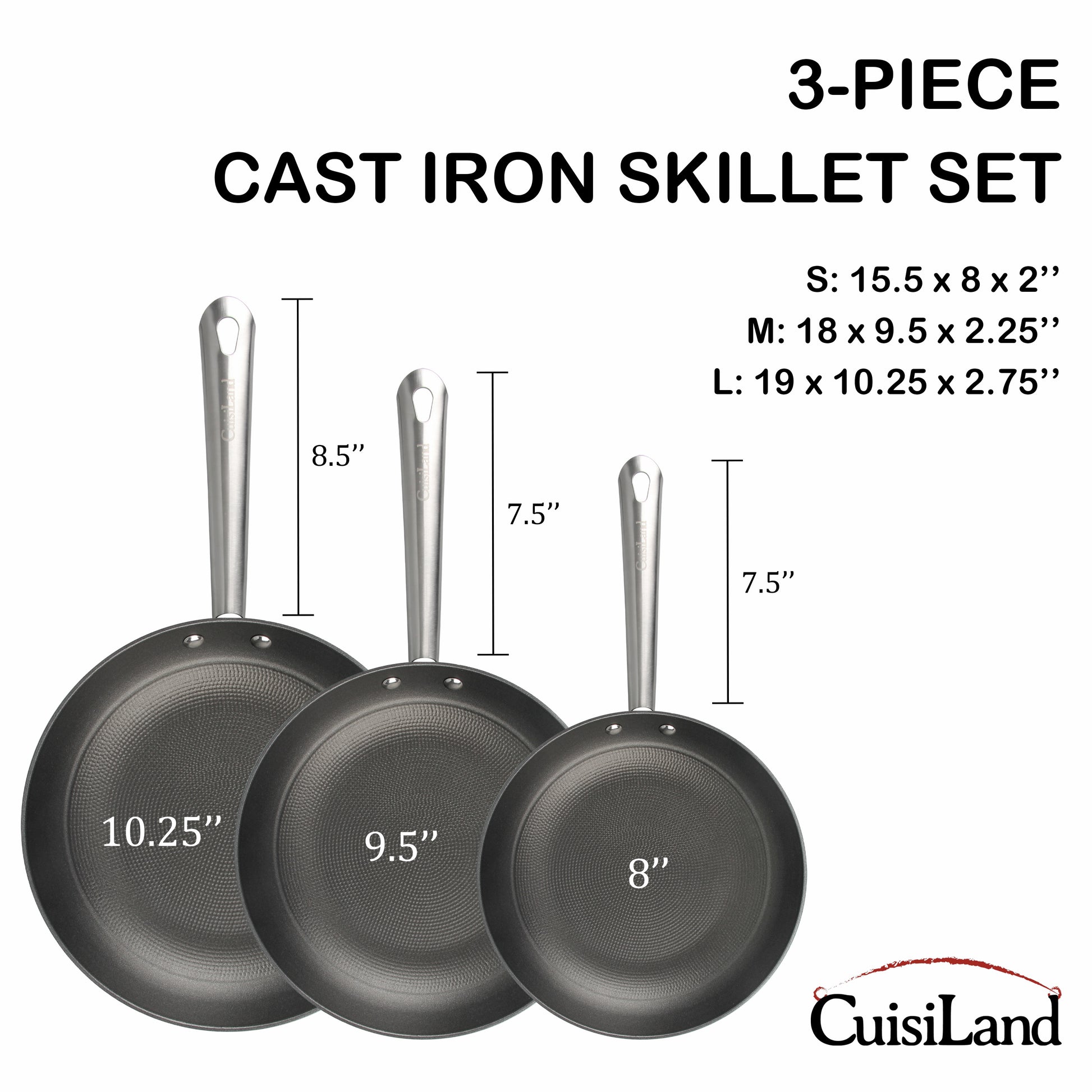 Cuisiland 8", 9.5", 10.25" Honeycomb Cast Iron Frying Pan Set