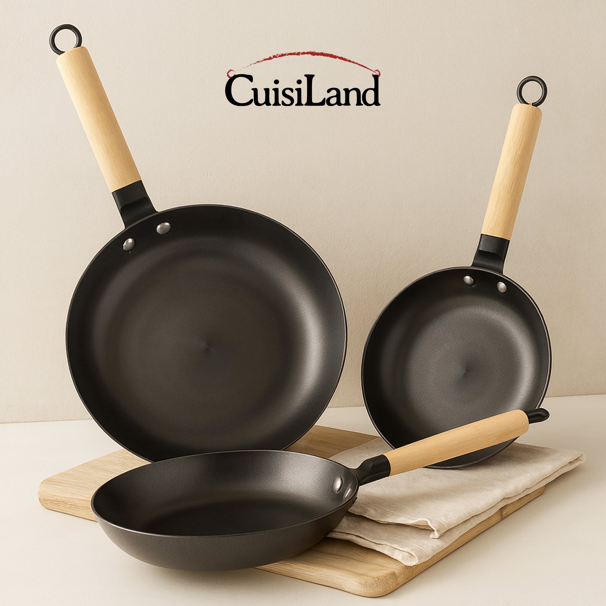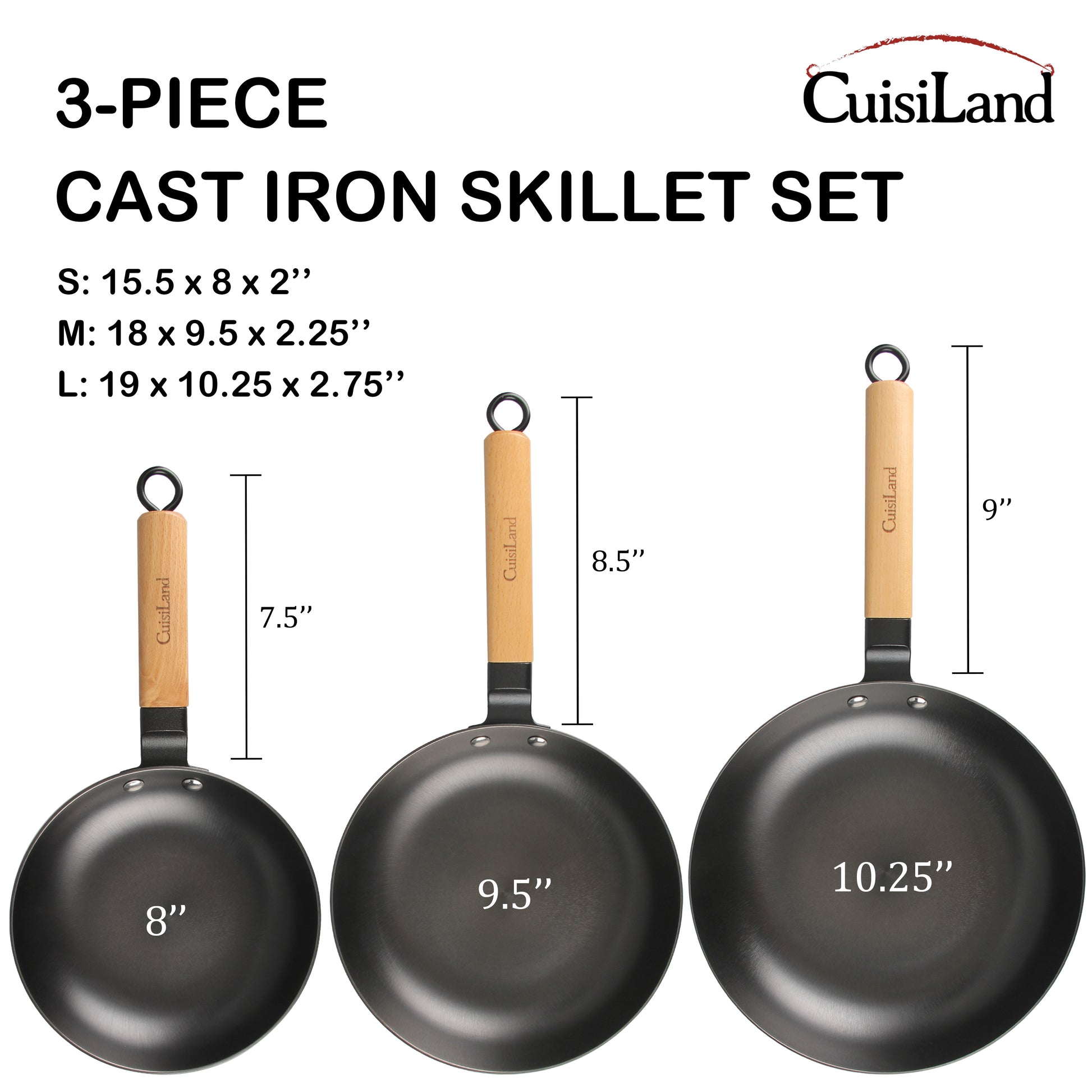 Cuisiland 8”, 9.5”, 10.25” Nitrided Cast Iron Frying Pan Set