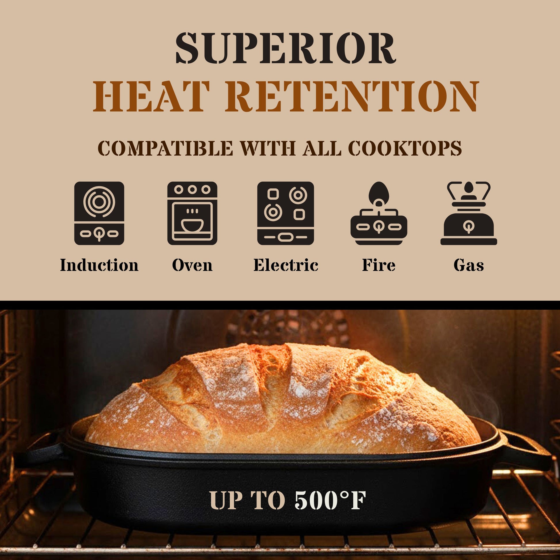 - EXCEPTIONAL HEAT RETENTION: Crafted from cast iron, this bread baker ensures exceptional heat retention, allowing for even and thorough baking of your bread. The cast iron material helps create a consistent and desired temperature throughout the baking process.