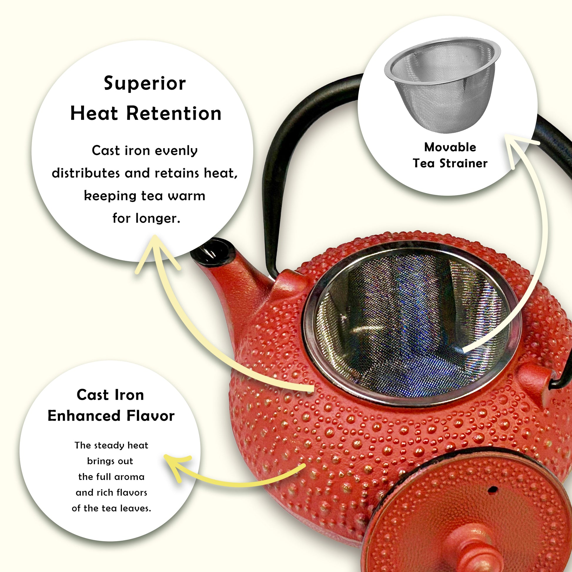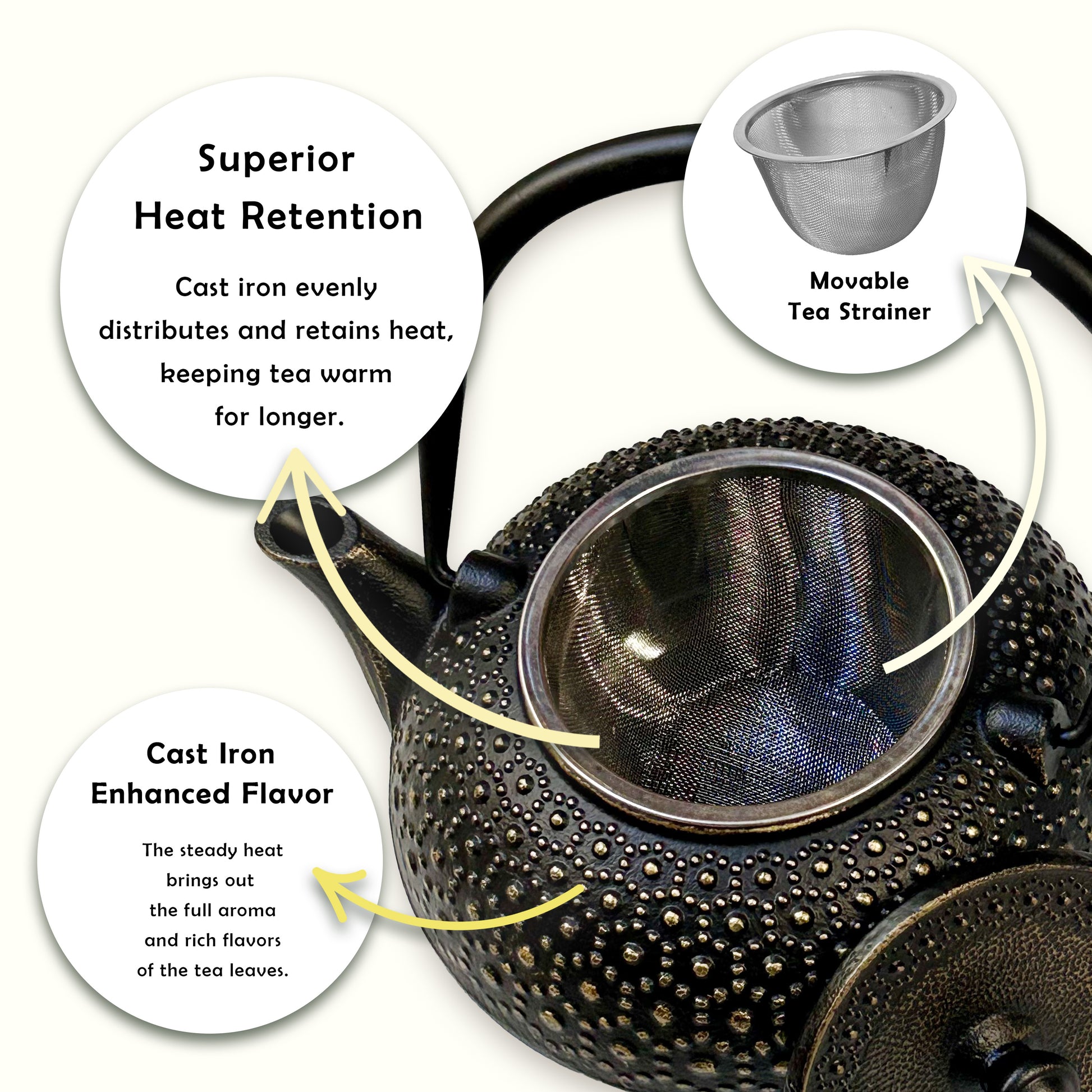 - EVEN HEAT DISTRIBUTION: The cast iron construction provides even heat distribution, bringing out the full flavor of your tea and keeping it warm for an extended period.