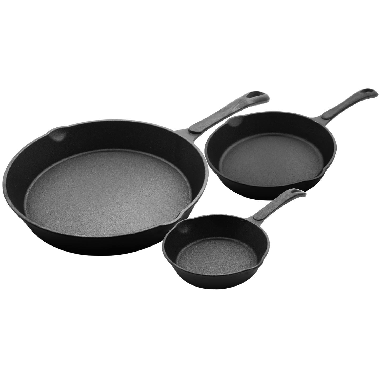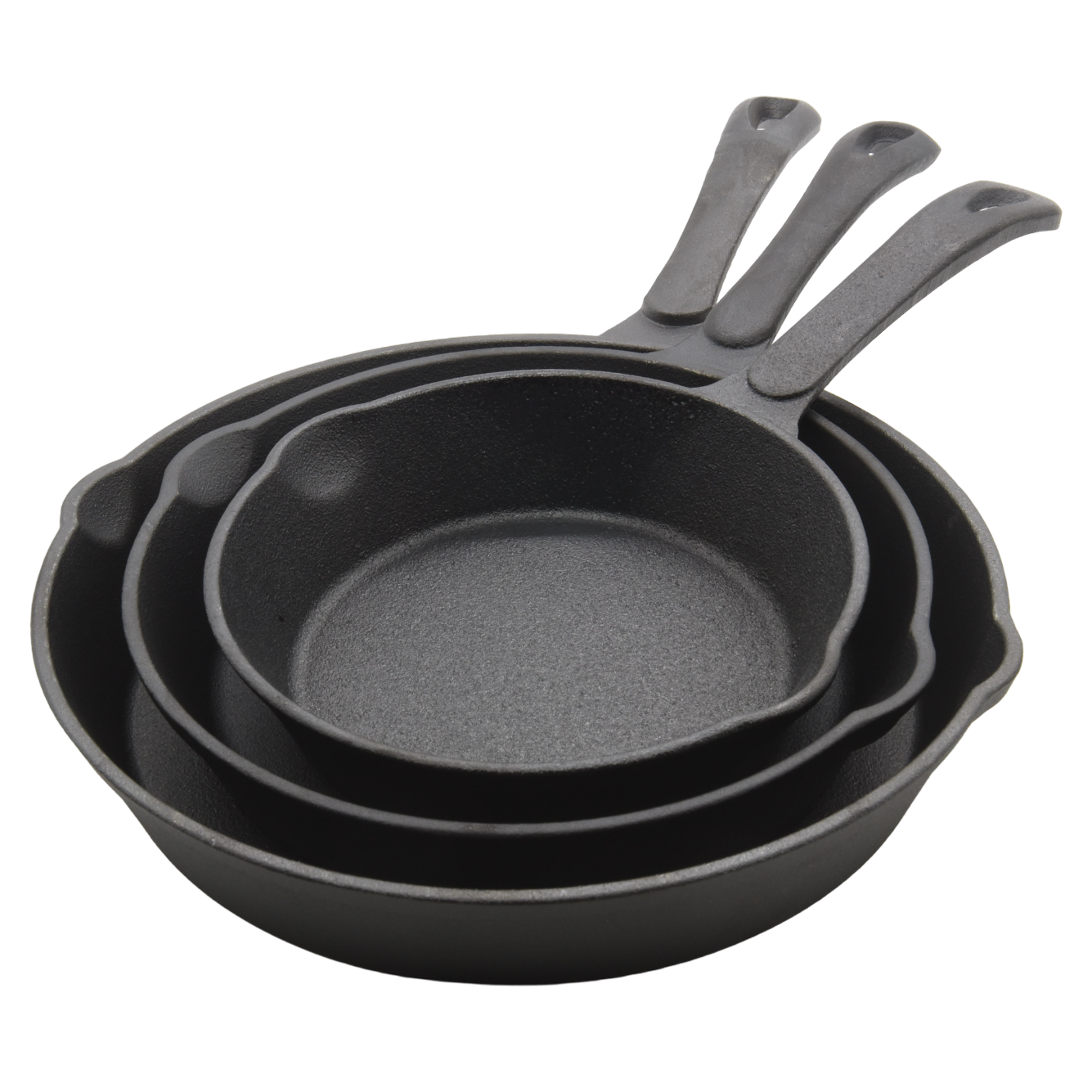 - 3-PIECE SET: This cast iron skillet set includes three versatile skillets, offering a range of sizes for different cooking needs. Each skillet comes pre-seasoned and ready to use, saving you time and effort.